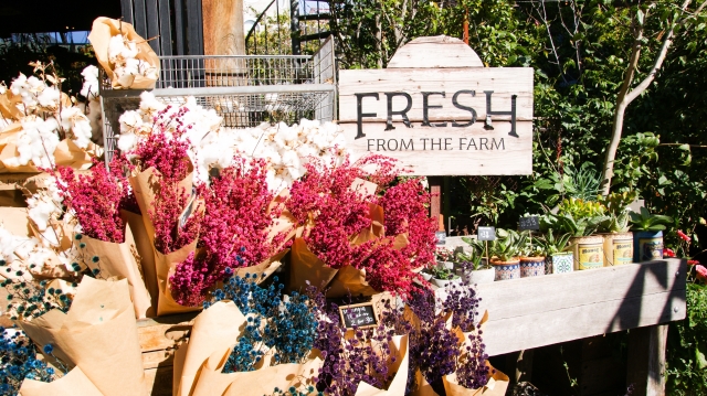 まだ開店したばかりのようで、切花たちが大きな束で大きなバケツに入ったままだ。